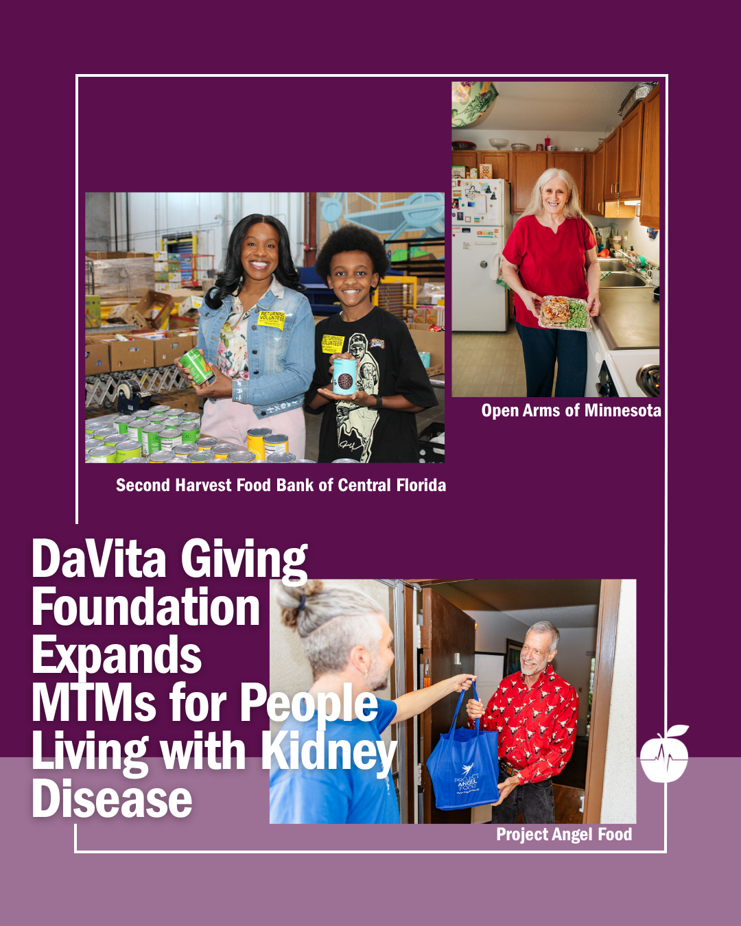 “At DaVita, we’re committed to whole-person care, supporting patients’ overall health and well being as they navigate their kidney health,” said Liz Gardner, executive director for the DaVita Giving Foundation. “We are grateful to work alongside the Food is Medicine Coalition (FIMC) team and the dedicated member organizations—Project Angel Food, Open Arms of Minnesota, and Second Harvest Food Bank of Central Florida. The medically tailored meals and essential nutrition services these organizations provide help nourish our communities and improve the health of those we serve.”