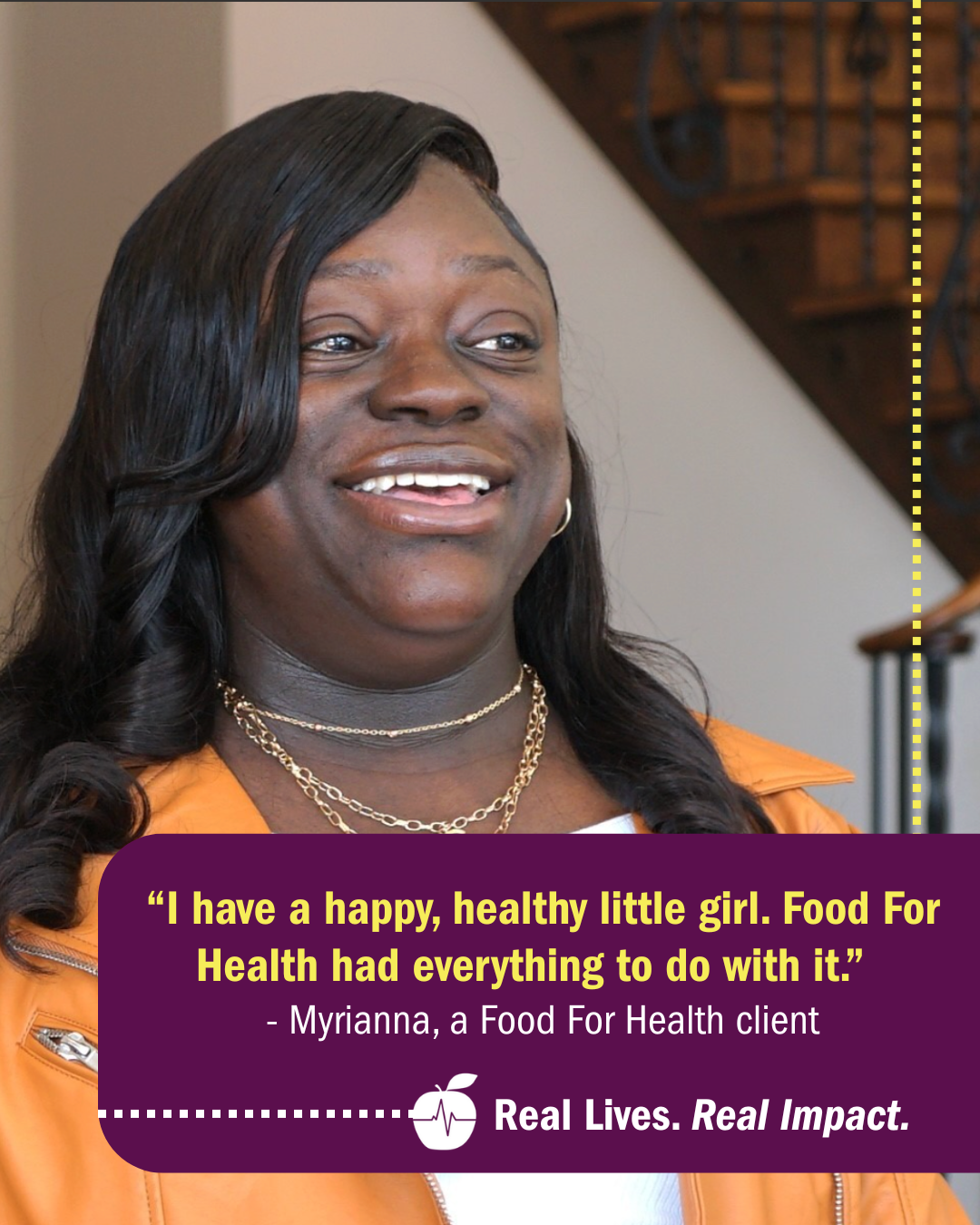 Myrianna is the proud mother of a healthy, happy little girl, and she credits FIMC agency, Food For Health in Milwaukee, WI, as a critical part of that journey. During her pregnancy, Myrianna received 10 medically tailored meals each week, weekly one-on-one health coaching, and access to cooking and nutrition classes. With this support, she was able to better monitor and manage health conditions that had complicated earlier pregnancies.